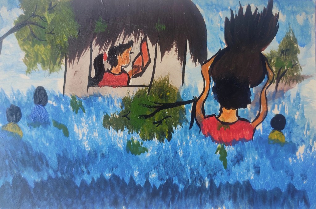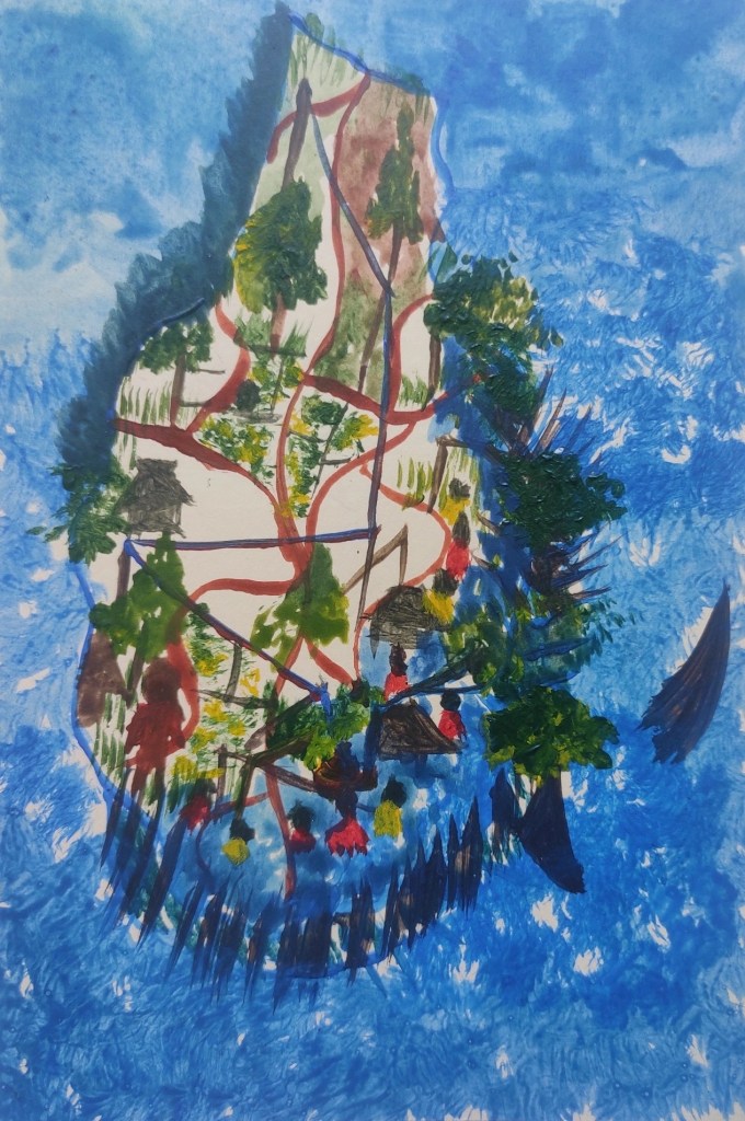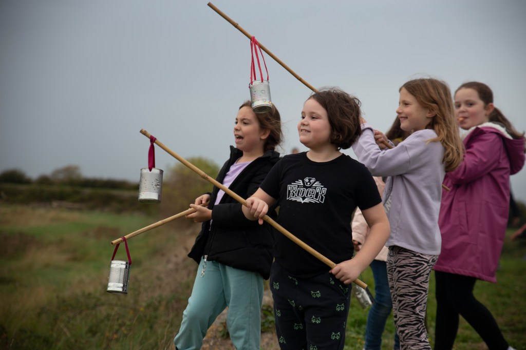 Workshops took place on Sagar in July 2022 with students from the island, where they explored their intertidal zone, a space that is rapidly shrinking as the island is eroded by rising sea levels. For these young people, climate change is a normal part of their lives, they adapt and make the best of what little they have, and enjoy their local festivals and family life. For many, this was their first visit to the seawall that holds back the ocean from their villages. They experimented with expressing themselves through print, dance, and film and created gifts for participants in Wales, which were exchanged with residents of the Gwent Levels as the beginning of a two month creative conversation between the two communities where we shared photographs, knowledge and stories about the landscape, the plants that grow there, the animals that inhabit it, and how it is affected by the changing seasons and weather patterns. In October 2022 the project concluded with lantern processions in both countries- carrying the lights inland to mark the inevitable passage of future tides.