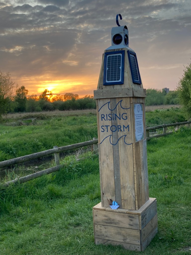 Our Lighthouses appeared at Magor Marsh and Newport Riverfront Arts Centre during 2022. They are now located at Newport Wetlands RSPB Reserve on the Gwent Levels; and in Langport village, Somerset, on the river path near The Bridge cafe. Why not pay them a visit? Each lighthouse sits on possible future intertidal space, warning us about the changes that may come as the fragile relationship between land and water shifts. They link to live tidal data from the Bay of Bengal, connecting us on the Severn Estuary to our tidal twins across the world, where coping with sea level rise is already a day to day reality. When the tide is rising in Bengal our lights here will flash a warning wave pattern about their present risk and our future. If you see the pattern change to an SOS message, this means that the tides are dangerously high and the community in Bengal is at risk from a storm surge.